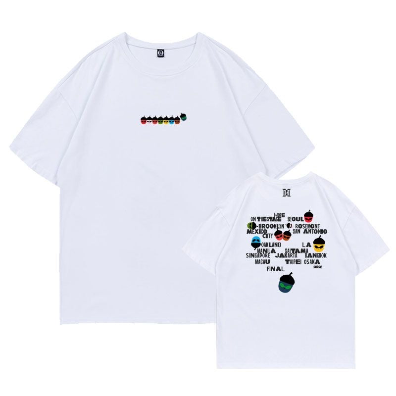 This BTS JHope On The Stage Album Tshirt is a must-have for any fan! Made from high-quality materials, it features a stylish design reflecting the band's tour and album. Stay cool and comfortable while showing off your love for BTS.