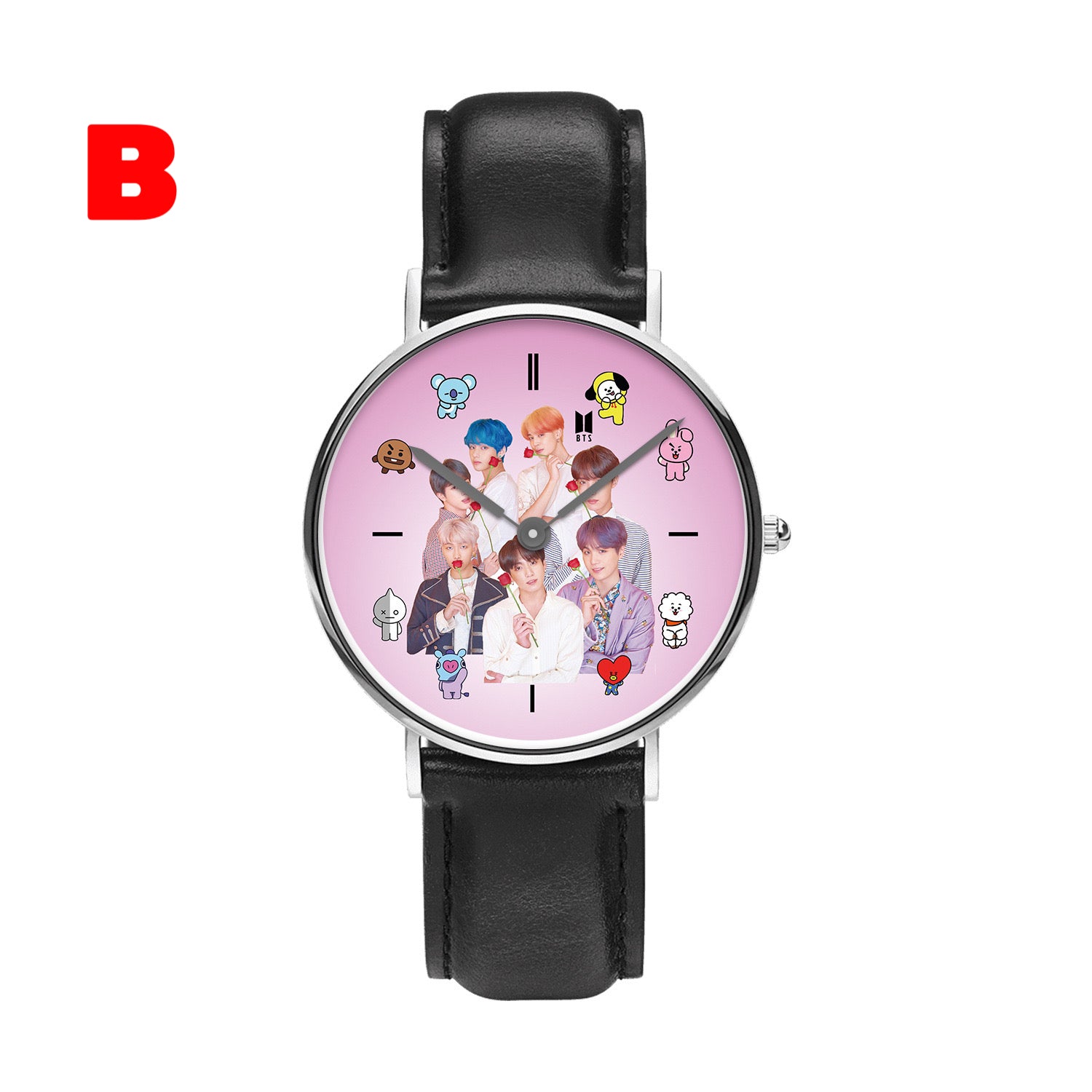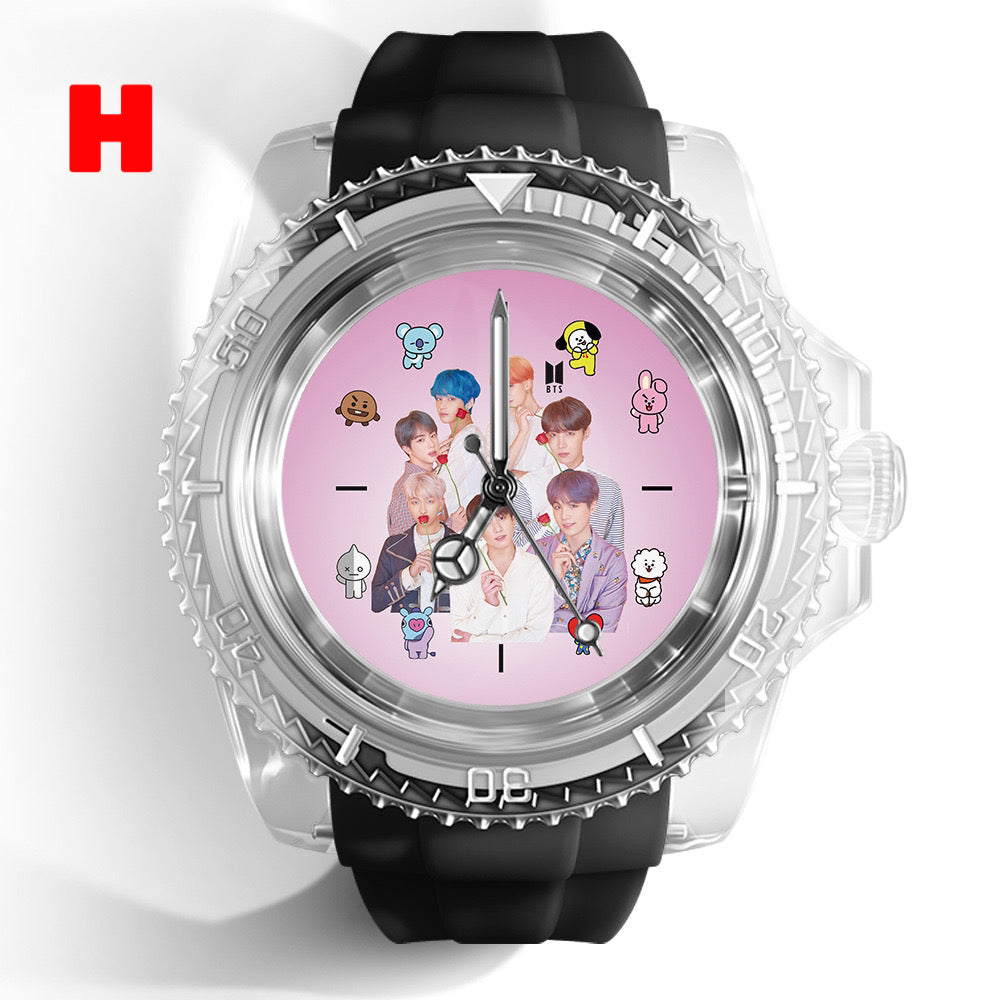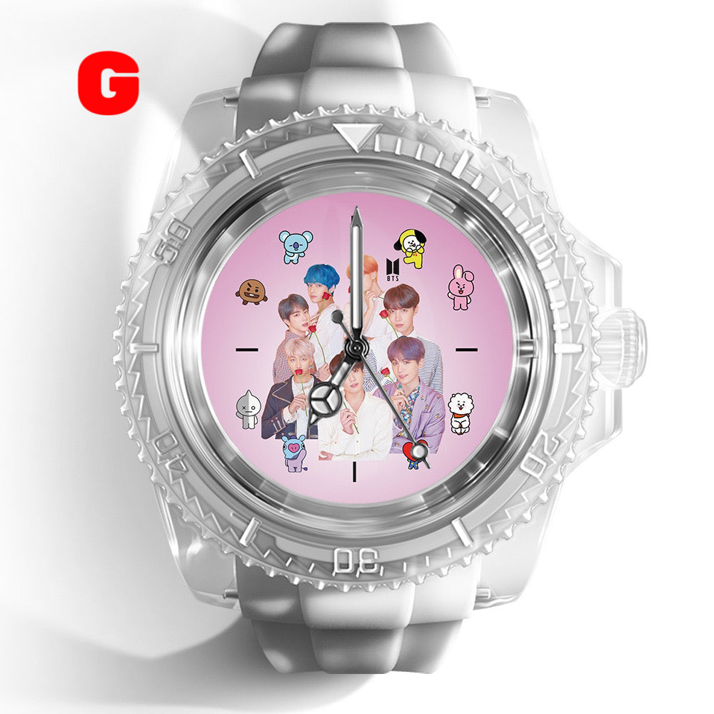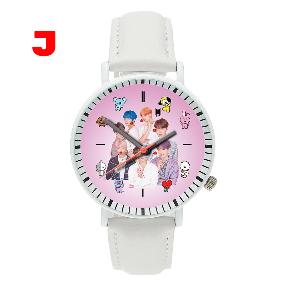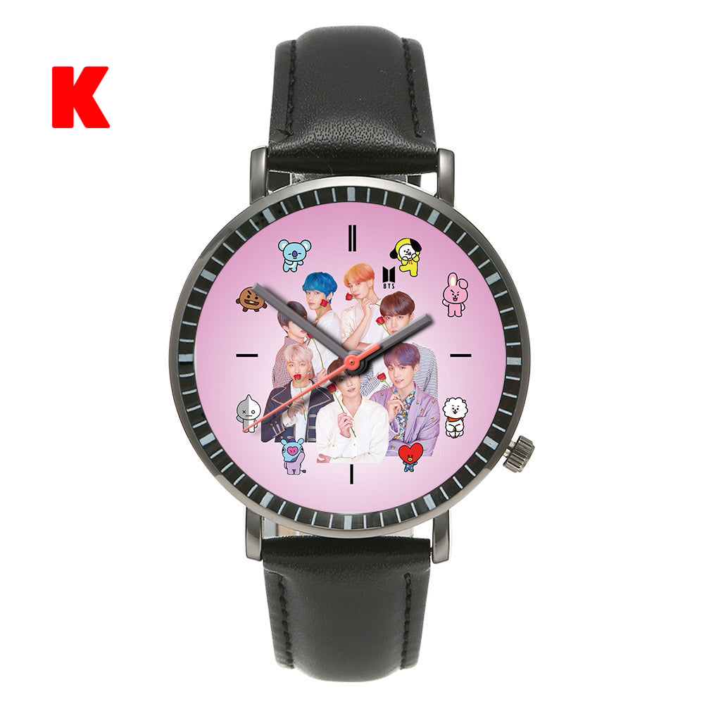 This stylish K-pop BTS Army watch is perfect for any fan of the popular South Korean group. With its sleek design and durable construction, this watch is sure to impress. Show off your love for K-pop and BTS with this must-have accessory.