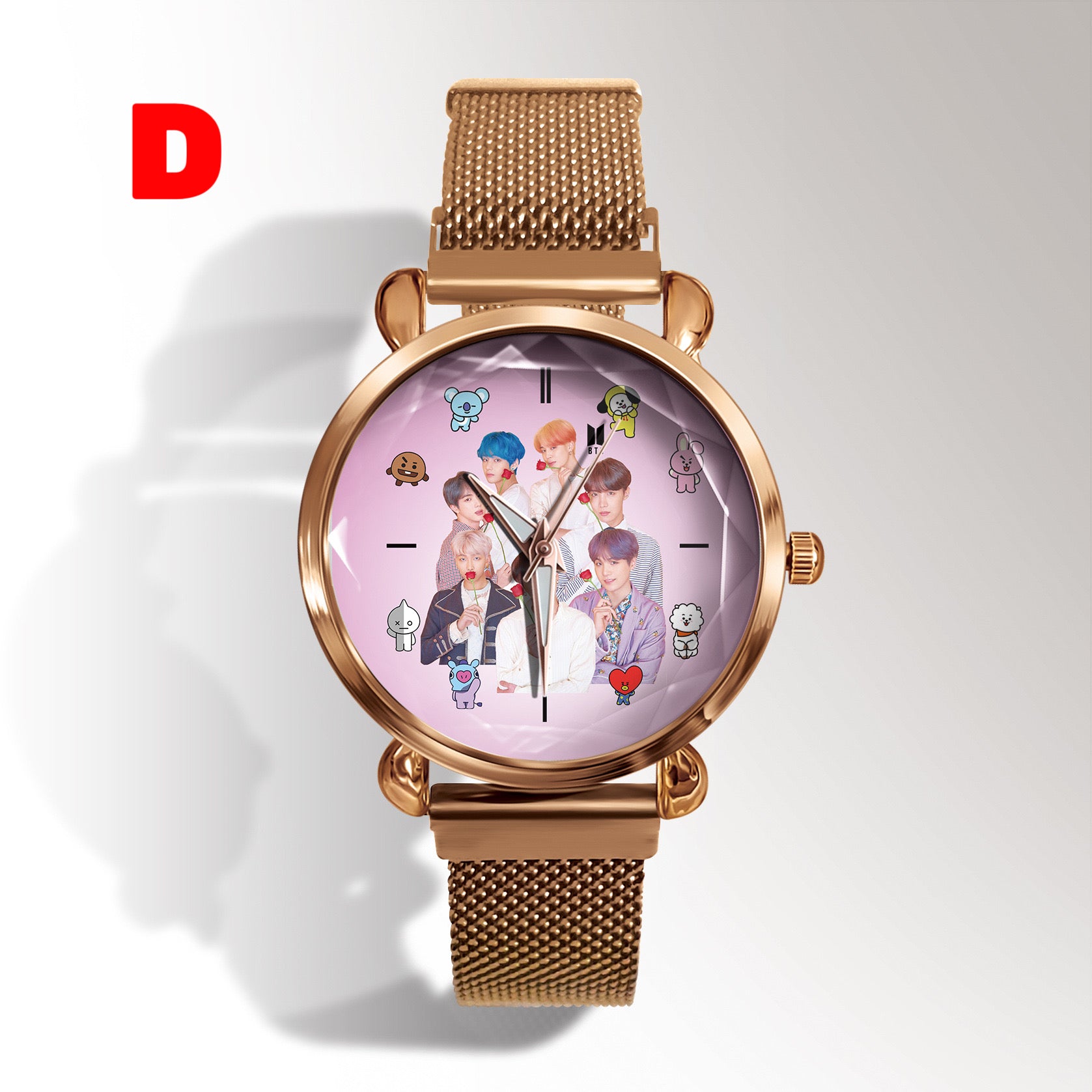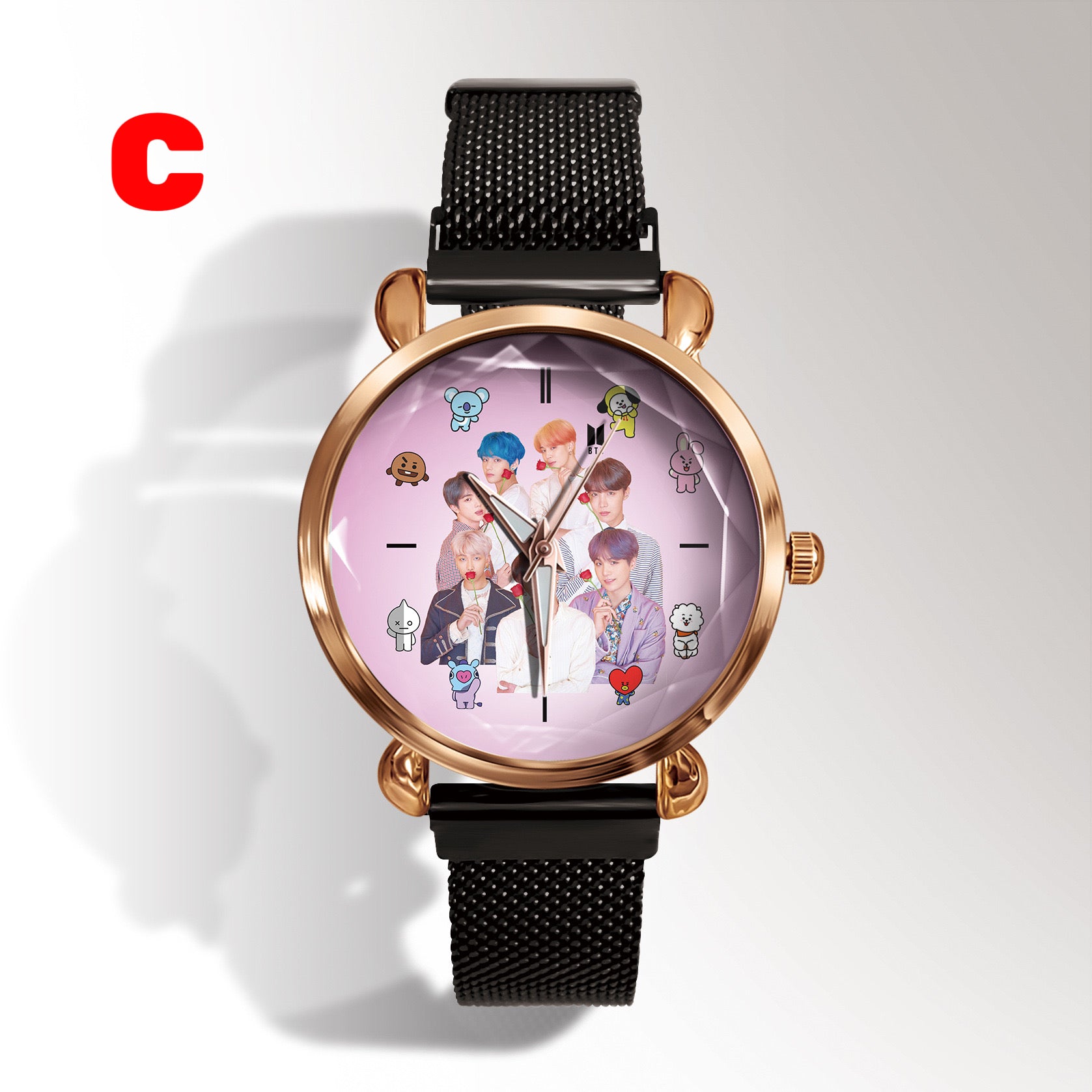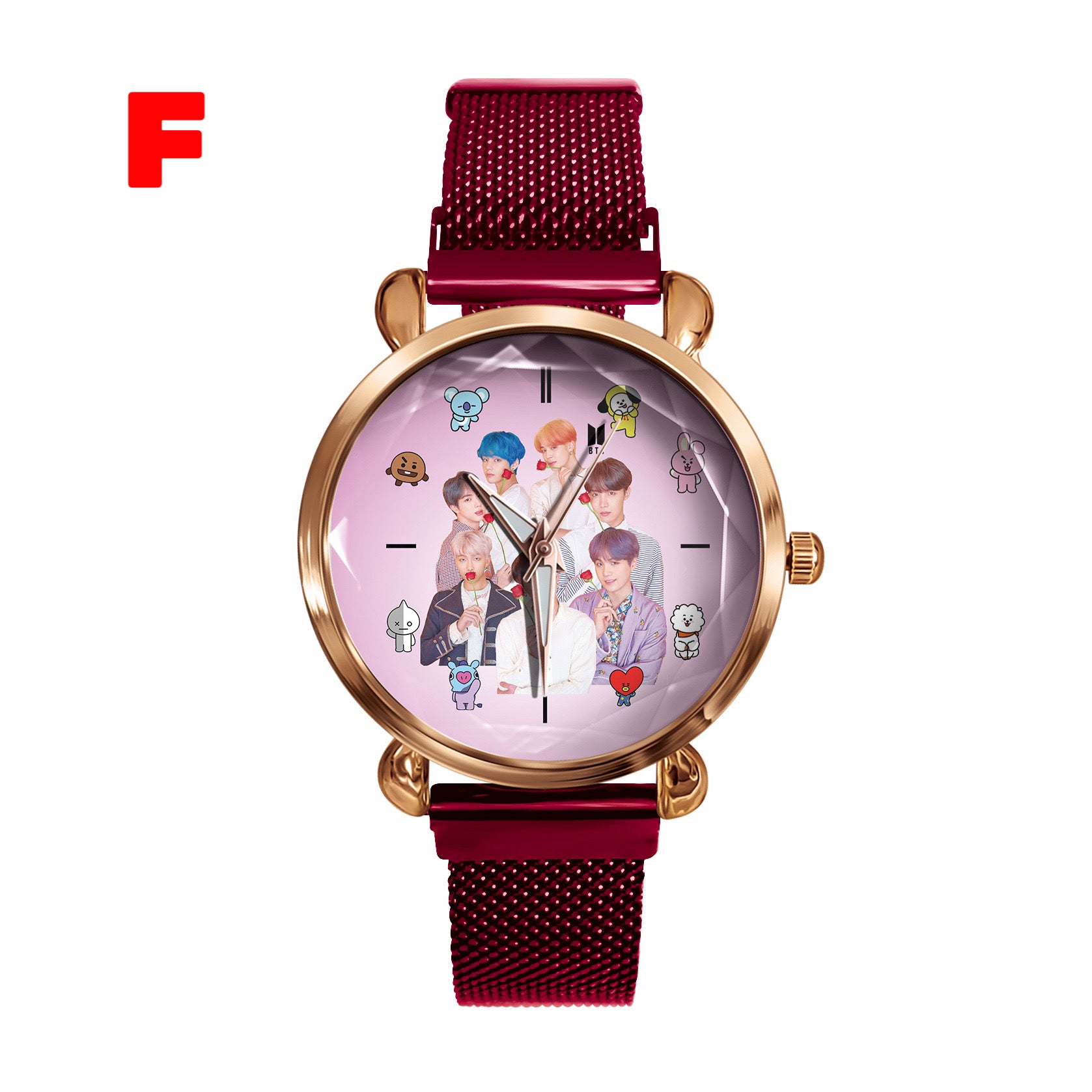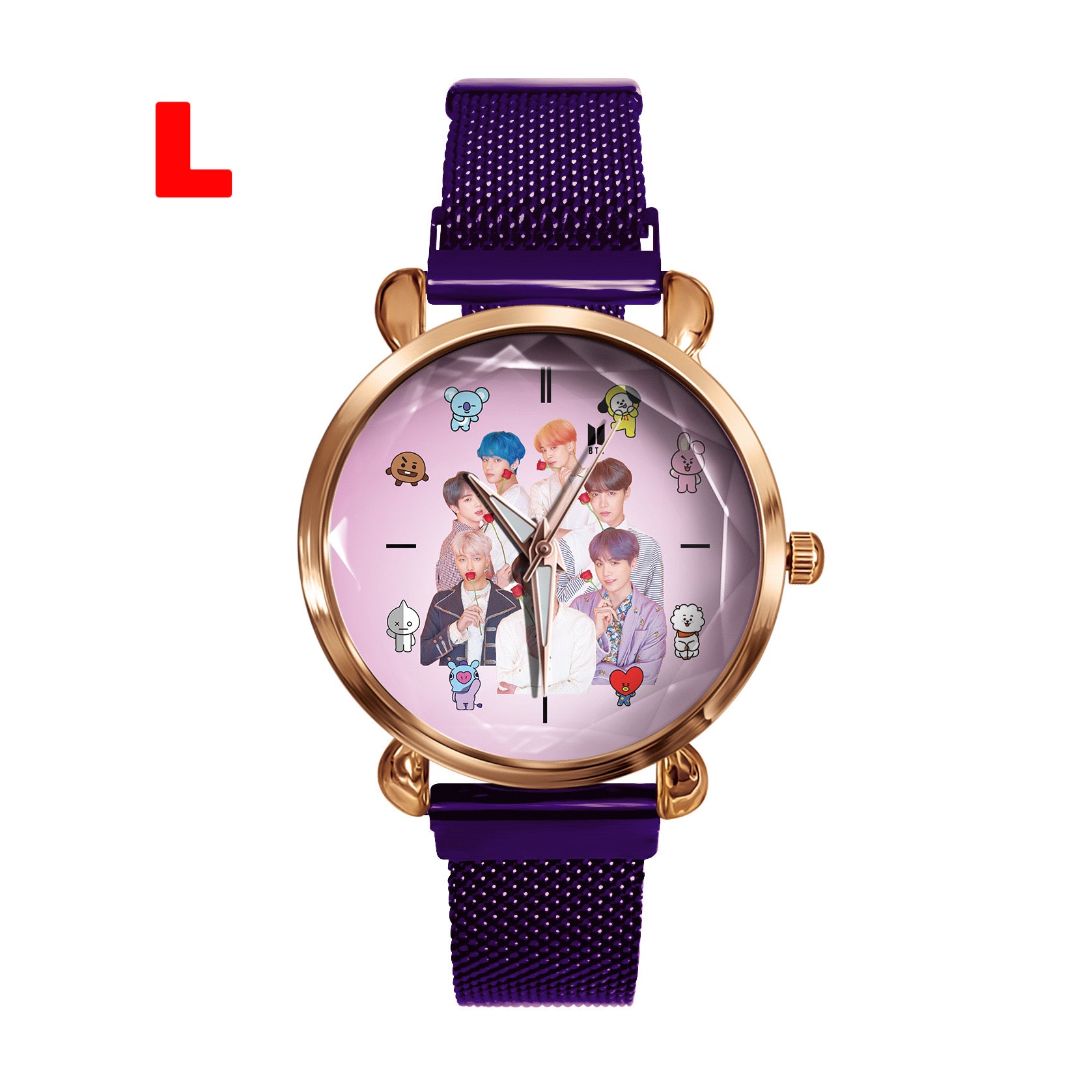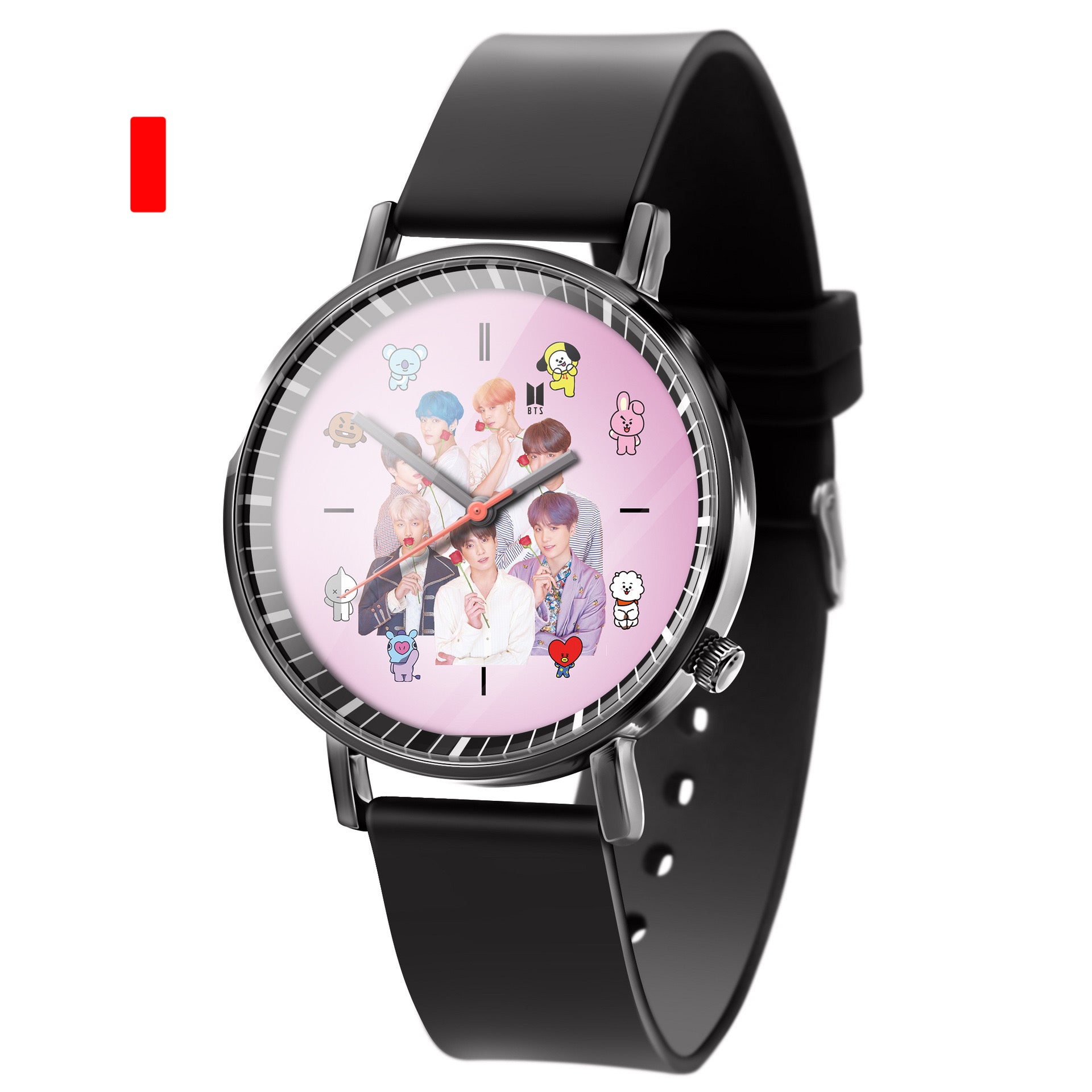 This stylish K-pop BTS Army watch is perfect for any fan of the popular South Korean group. With its sleek design and durable construction, this watch is sure to impress. Show off your love for K-pop and BTS with this must-have accessory.